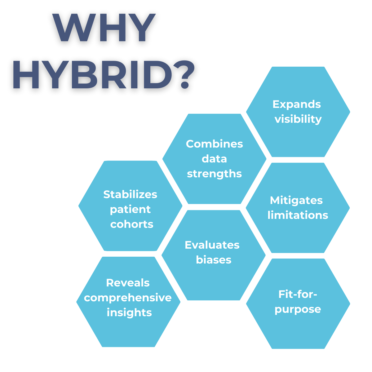A hybrid RWD model combines the strengths of each data source, while mitigating the limitations found in the complementary data sources.